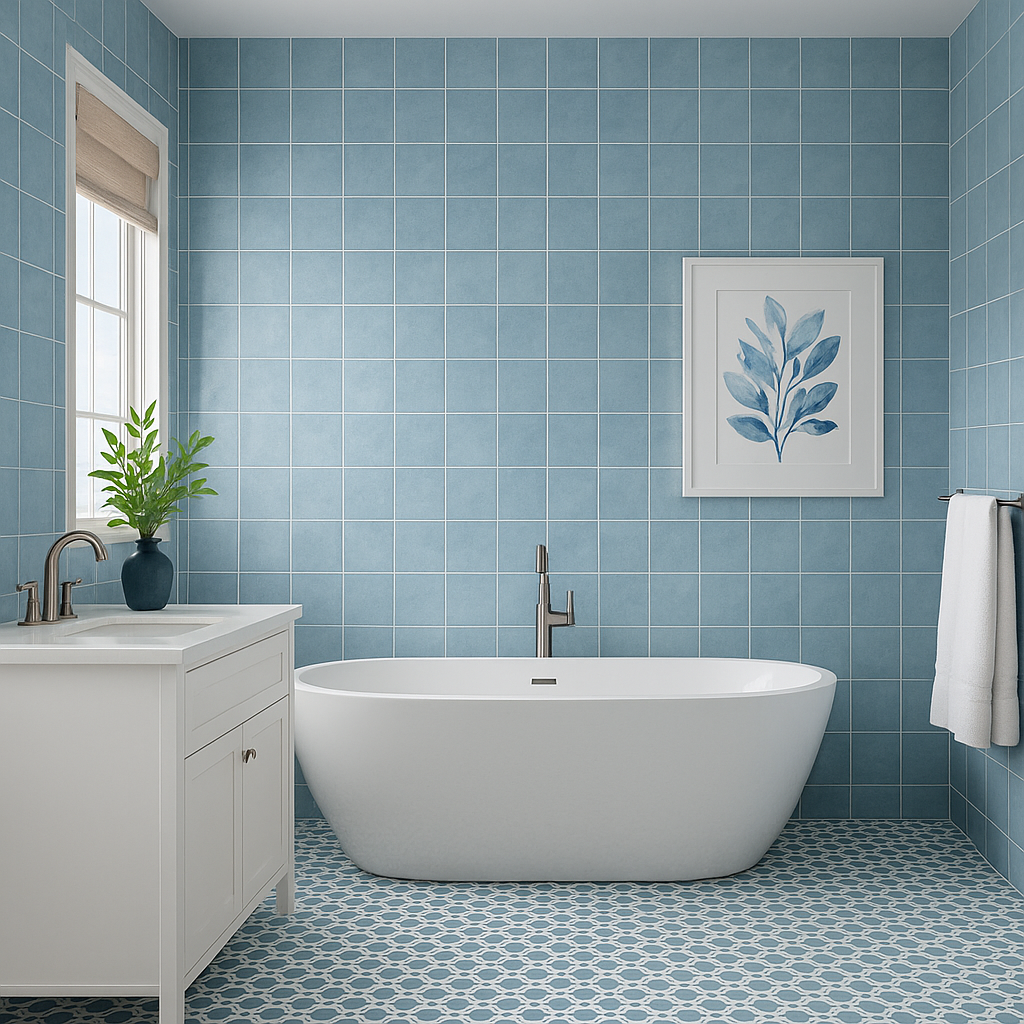 Bold tones—deep blues, rich emeralds, and burgundy—create immersive bathrooms that feel luxurious. Glazed porcelain tiles in saturated hues bring glossy sophistication. Pastel ceramic wall tiles in lavender, mint green, and blush pink create charming, fresh atmospheres that make smaller bathrooms feel spacious.